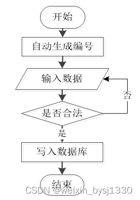 用户在添加信息时,信息编号自动生成,系统会对添加的信息进行验证,验证通过则添加至数据库,添加信息成功,反之添加失败。添加信息流程如图2-3所示。