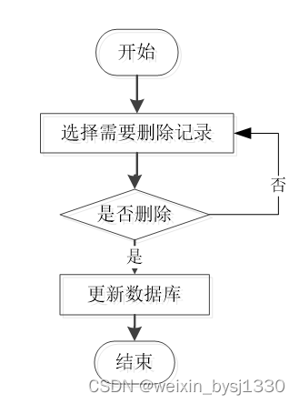 用户可选择要删除的信息进行信息删除操作,在删除信息时系统提示是否确定删除信息,是则删除信息成功,系统数据库将信息进行删除。删除信息流程图如图2-4所示。