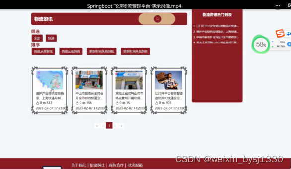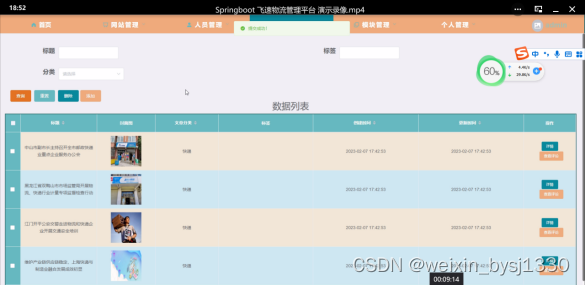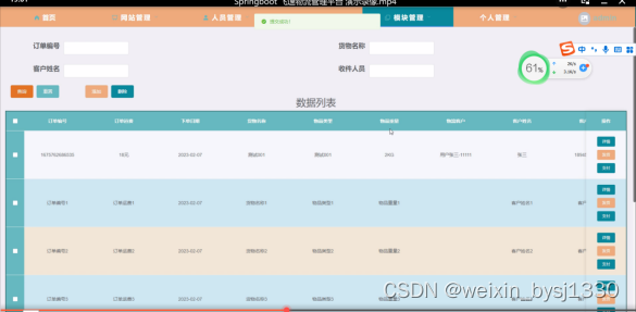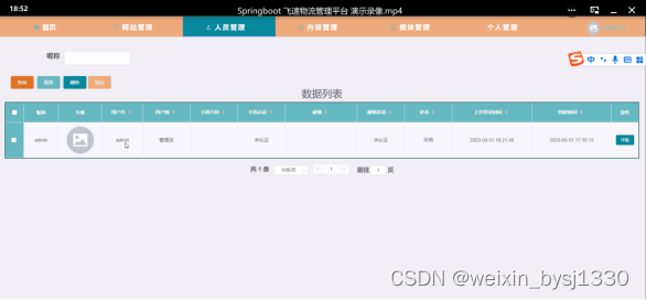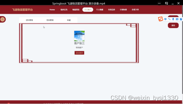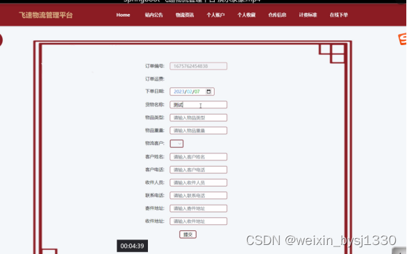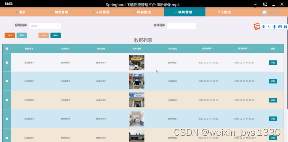 关键词:物流管理平台 JAVA springboot MySQL