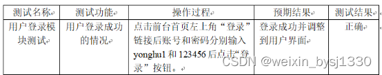 表5.1 用户登录功能测试表