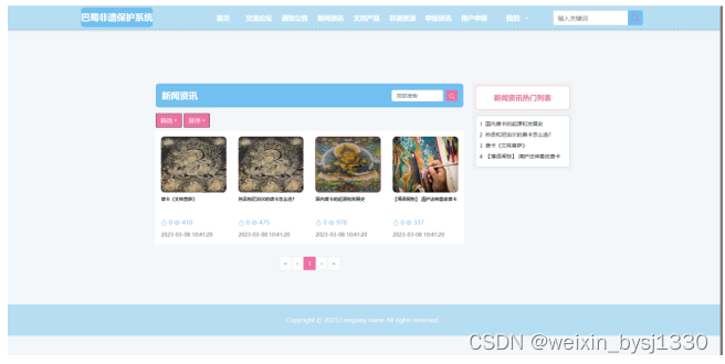 实用性方面,本次设计的主要任务是在巴蜀非遗保护系统内首页、轮播图、通知公告、资源管理(新闻资讯、资讯分类)交流管理(交流论坛、论坛分类)系统用户(管理员、注册用户)模块管理(非遗资源、非遗类型、申报资讯、资讯类型、用户申报)等,符合当前潮流的发展。从用户角度出发,同时也考虑系统运营成本和人力资源,采用网络上的便捷方式,实现线上业务,使得业务流程更系统,也更方便用户的体验,比较实用。