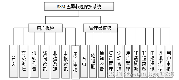 巴蜀非遗保护系统总体分为前台用户模块和后台管理员模块。