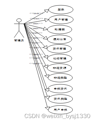 巴蜀非遗保护系统的功能主要分为前台用户根据自己的需求进行注册登录,浏览族谱申报信息并对选中的族谱申报进行发布操作。后台系统管理员因职责的不同,分为普通管理员和超级管理员,管理员主要对注册用户,非遗资源、非遗类型、申报资讯、资讯类型、用户申报信息,非遗传承文档详细信息进行处理。