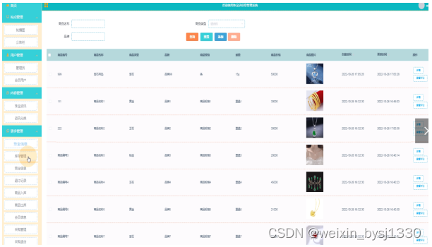 (2)商品管理:主要包括商品列表、商品类目管理、商品添加、珠宝信息管理等功能。