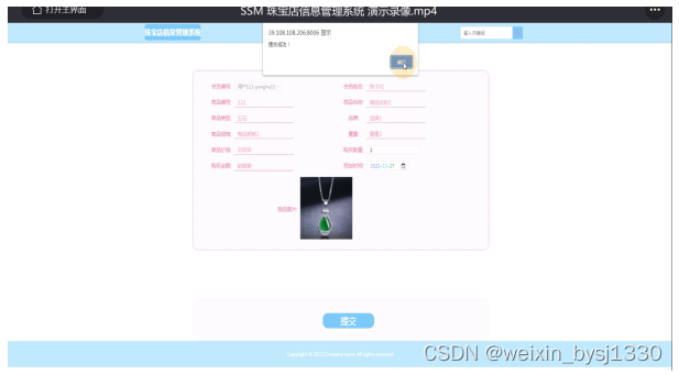 本文详细介绍了基于SSM(SpringMVC+Spring+Mybatis)框架的珠宝店信息管理系统的设计与实现。系统涵盖了用户注册、商品搜索、预定、订单管理等功能,采用MVVM模式,使用Vue.js进行前端开发,后端利用Eclipse、MySQL数据库和SSM框架。系统分析了可行性、需求,并设计了数据库结构,实现了各模块功能,包括登录、商品管理、预定信息管理等,最后进行了系统测试。