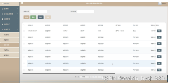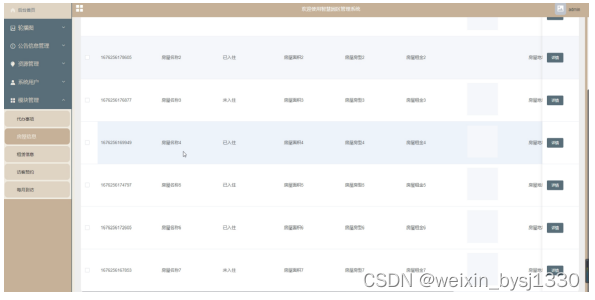 房屋信息管理,管理员在房屋信息管理中可以对房屋名称、编号、状态、地址、房型、简介等进行发布,并可根据需求进行修改或删除操作,如图4-8所示。