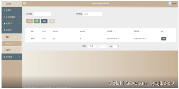 6.管理员功能,管理员可以对用户或者园区信息进行管理。