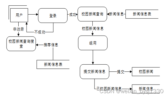 新闻网站系统最主要的一个目的就是实现用户对校园新闻信息的查询,图2-1就是系统的数据流图。