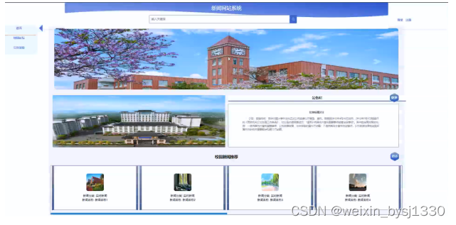 | 预期结果 | 提交以后,页面首页会显示新的校园新闻信息 |