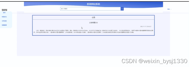 (5)站点管理:管理员可以对新闻网站系统中首页显示的轮播图+公告栏以及系统中的一些公告发布到系统当中,让用户及时的查看到系统信息,进行合理安排。