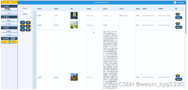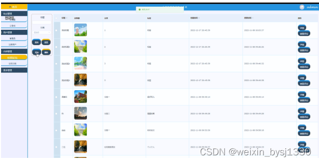 (3)内容管理:当点击“内容管理”这一菜单的时候,会出现校园论坛+论坛分类这两个子菜单,能够对用户在前台提交的校园论坛进行管理;