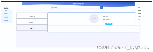 (6)个人中心:当用户点击右上角“我的”这个按钮,就会进入到对应的后台进行信息的管理了;