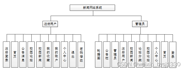 按照 新闻网站系统的角色,我划分为了注册用户管理模块和管理员管理模块这两大部分。