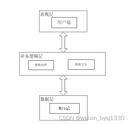 页面发送请求给控制器,控制器调用业务层处理逻辑,逻辑层向持久层发送请求,持久层与数据库交互,后将结果返回给业务层,业务层将处理逻辑发送给控制器,控制器再调用视图展现数据。