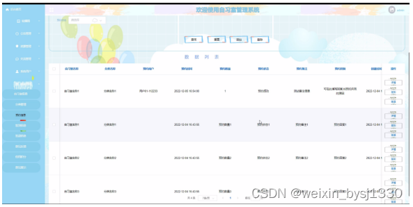 图4-9自习室预约管理界面图