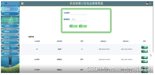 (3)房产信息管理:小区管理者在后台可以对房产信息进行增删改查操作;