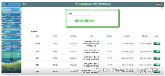 研究小区物业管理系统的设计与实现,是为了能够拥有界面简洁友好、操作简单以及运行稳定的智能化的一站式物业管理方式。系统的需求主要来自物业管理人员和业主。