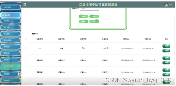 (5)资产设备管理:点击“资产设备信息”这一按钮后会显示出所有的资产设备信息,并且可以进行添加、编辑、删除和查询操作;