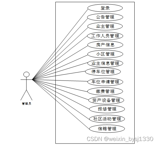 小区物业管理系统中管理员角色用例图如图2.2所示: