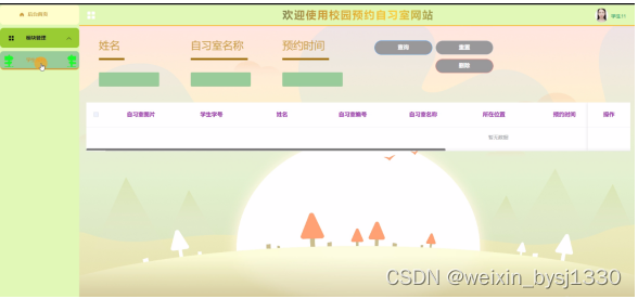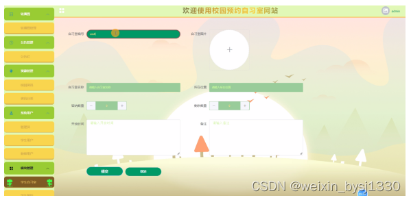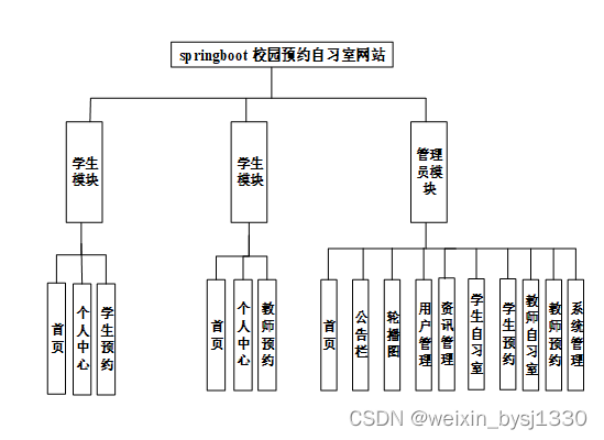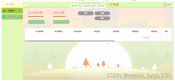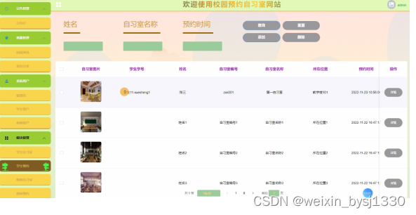 2. 系统功能还不够完善,无法提供丰富多彩的在线功能,只能实现管理员:首页、轮播图、公告栏、资询管理(校园资讯、资讯分类)系统管理(管理员、学生用户、教师用户)模块管理(学生自习室、学生预约、教师自习室、教师预约)系统管理等一系列功能。