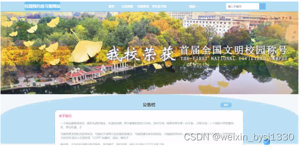 Under the influence of the rapid development of society, the vigorous development of education has greatly increased the number, diversity, quality and other requirements of schools, making the management and operation of education more difficult than in the past. Based on this reality, designing a fast and convenient campus reservation study room website is a very important and valuable thing. For traditional campus reservation and study room websites, campus reservation and study room websites have many incomparable advantages. First, they can quickly update campus information, second, manage a large amount of information, and finally, they are highly secure and easy to use. This makes the management and operation of campus reservation and study room websites very convenient. In the 21st century, due to the rapid development of technology and economy, people's general spiritual needs for non material aspects have become increasingly diverse. This system is proposed to achieve these goals.