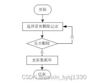 用户可选择要删除的信息进行信息删除操作,在删除信息时系统提示是否确定删除信息,是则删除信息成功,系统数据库将信息进行删除。删除信息流程图如图2-4所示。