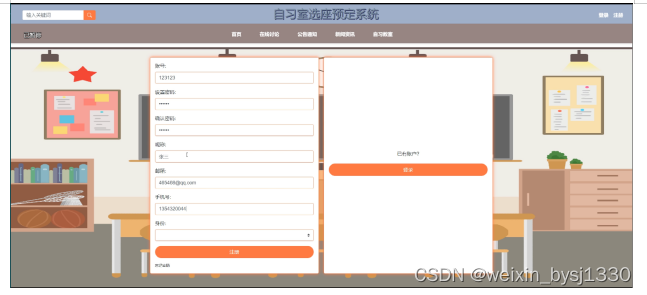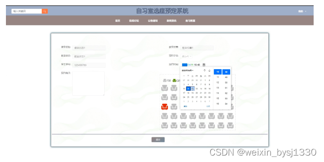 Keywords:springboot; Self study room seat selection and reservation system; MySQL