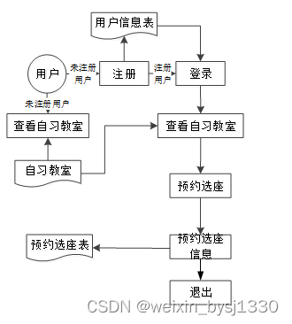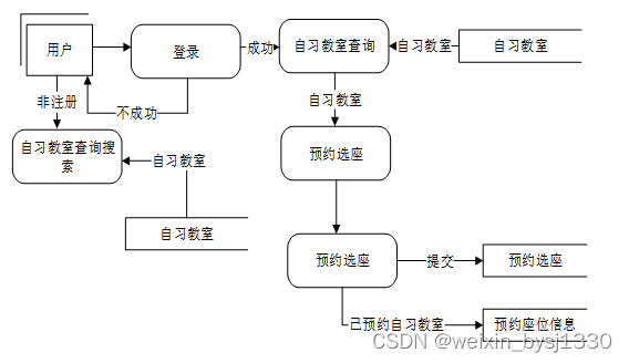 开发自习室选座预定系统最主要的一个目的就是实现用户对自习教室的预约座位,图2-3就是系统的数据流图。
