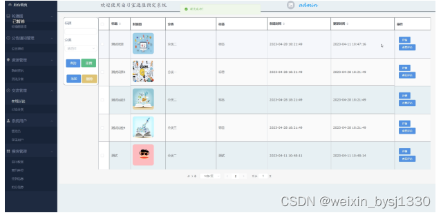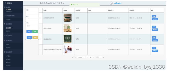 (1)轮播图/公告通知管理:管理员可以对系统前台展示的轮播图以及公告通知进行增删改查,方便用户进行查看。