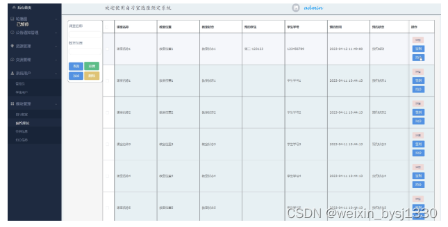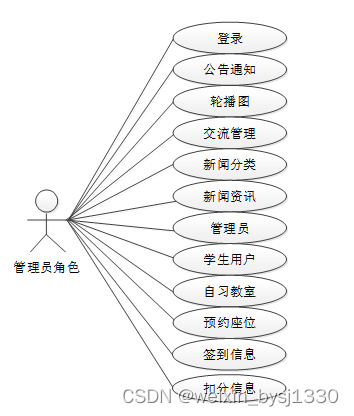 管理员包含了管理员以及学生用户两部分,管理员拥有最高的权限,实现了对自习室选座预定系统信息的增删改查操作