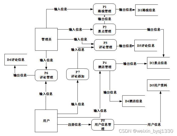 根据系统的业务流程,用户浏览所使用到的数据归纳为输出信息。而用户提交的数据则作为系统的输入数据。相应的,根据系统管理员业务流程,管理员对系统内容的添加、更新和删除等所操作的数据定义为输入信息。