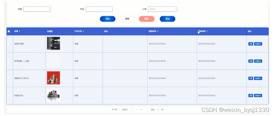 管理员拥有对商品的分类增删改查的功能,分类列表界面如下图4-13所示。