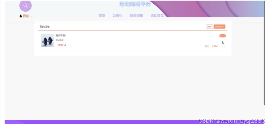 (7)我的订单:用户在提交订单后,可以对提交的订单进行管理。