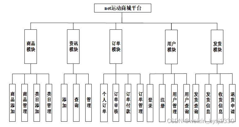 按照运动商城平台的角色,我划分为了用户管理模块和管理员管理模块这两大部分。