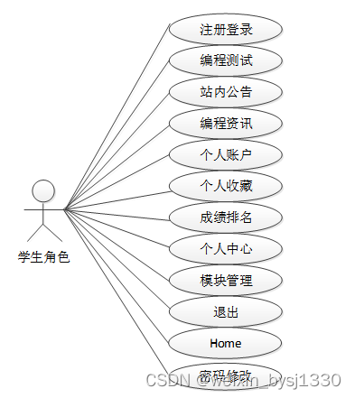 青少年编程训练平台中学生用户角色用例图如图2.1所示: