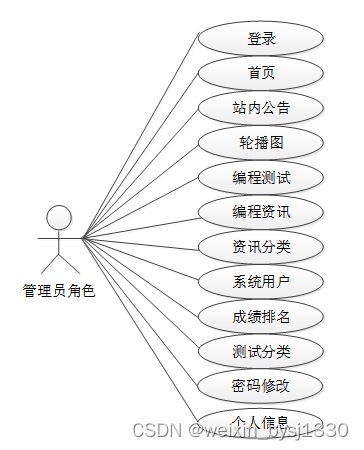 青少年编程训练平台中管理员角色用例图如图2.2所示: