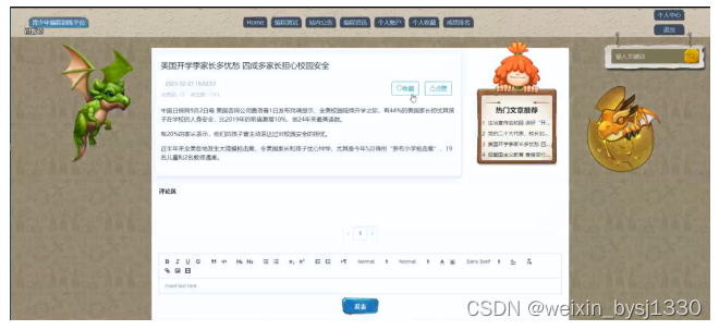 (4)编程资讯:用户可以查看编程资讯信息,在查询到自己想要了解的编程资讯的时候,可以进入查看详细的介绍进行评论、点赞、收藏操作。
