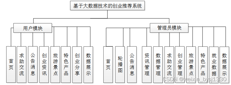 基于大数据技术的创业推荐系统 是个现代化的高度集成的综合信息系统,系统主要服务对象为用户,最大化在页面中提供多的信息,因此在系统维护上,数据量较大,整体的维护设计如下: