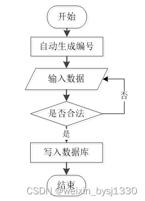 用户成功登入系统后就能够实现增加数据的操作,增加数据的编号是特定的,系统生成,用户不能随意填写,除了编号以外,其他增加信息用户自己填写,填写后的信息经过系统验证,验证合法通过就显示增加数据成功了,相反的话,就没有增加成功,图2-1显示的就是在增加数据时的流程。