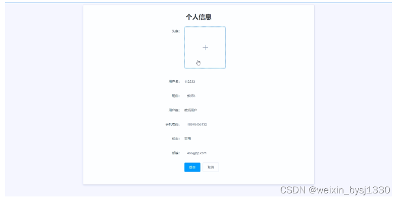 (1)个人信息:管理员点击“个人信息”按钮,可以对个人的头像、昵称、手机号码等信息进行更新。