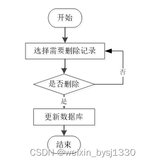 用户可选择要删除的信息进行信息删除操作,在删除信息时系统提示是否确定删除信息,是则删除信息成功,系统数据库将信息进行删除。删除信息流程图如图2-4所示。