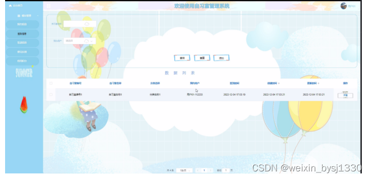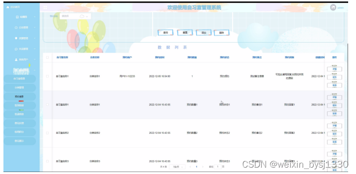 图4-9自习室预约管理界面图