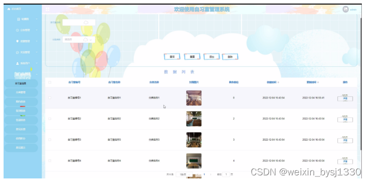 图4-8自习室管理界面图