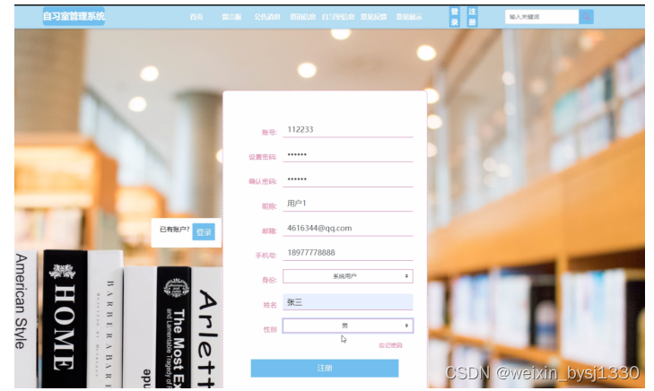 SSM自习室管理系统