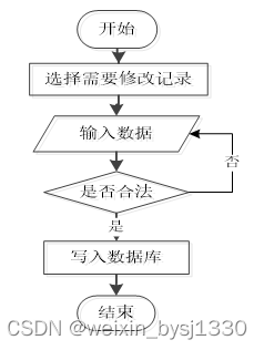 管理员可以对课程信息、课程签到等进行信息的修改,学生也可以对自己权限内的信息进行修改,首先进入修改信息界面,输入修改信息数据,系统进行数据的判断验证,修改信息合法则修改成功,信息更新至数据库,信息不合法则修改失败,重新输入。修改信息流程图如图3-5所示。