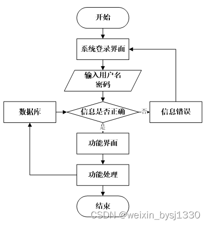 学生打开客户端并进入系统后,会先显示登录界面,输入正确的用户名和密码,系统自动检测信息,若信息无误,则学生会进入系统功能界面,进行操作,否则会提示错误无法登录,操作流程如图3-3所示。