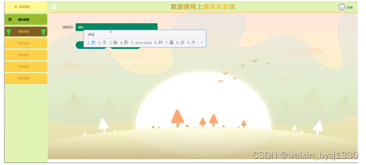 对于本上课点名系统的设计来说,它主要是采用后台采用了B/S的结构,它是应用mysql数据库,python等技术动态编程以及数据库进行努力学习和大量实践,并运用到了整个系统的设计当中,具体根据网上上课点名系统的现状来进行开发的,具体根据学生需求实现网上上课点名系统网络化的管理,各类信息有序地进行存储,进入上课点名系统页面之后,方可开始操作主控界面,系统功能包括管理员服务端:后台首页、系统用户(管理员、任课老师、学校领导、班主任、学生注册)、模块管理(课程类别、课程信息、课程签到、公告信息、签到提醒)。任课老师:后台首页、模块管理(课程类别、课程信息、课程签到、公告信息、签到提醒)。学生客户端:后台首页、模块管理(课程信息、课程签到、公告信息、签到提醒)。学校领导:后台首页、系统用户(任课老师、学校领导、班主任、学生注册)、模块管理(课程类别、课程信息、课程签到、公告信息、签到提醒)等功能。