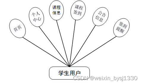 用户进入系统可以进行后台首页、模块管理(课程信息、课程签到、公告信息、签到提醒)等功能。用户用例如图3-8所示。