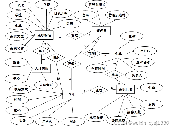 大学生兼职网站所拥有的数据表有以下:用户信息表,职位信息表,学生简历表,企业信息表。