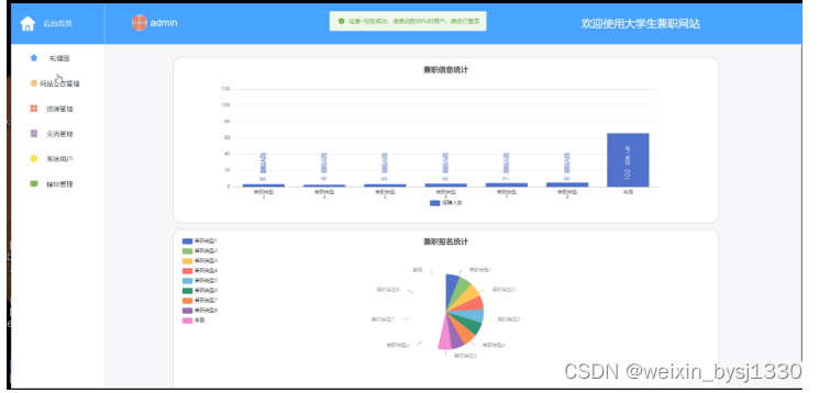 关键词:大学生兼职网站;springboot框架;MySQL数据库
